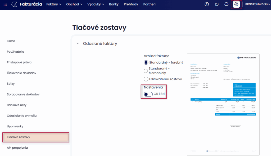 Ako zobraziť/vypnúť na faktúre QR kód?