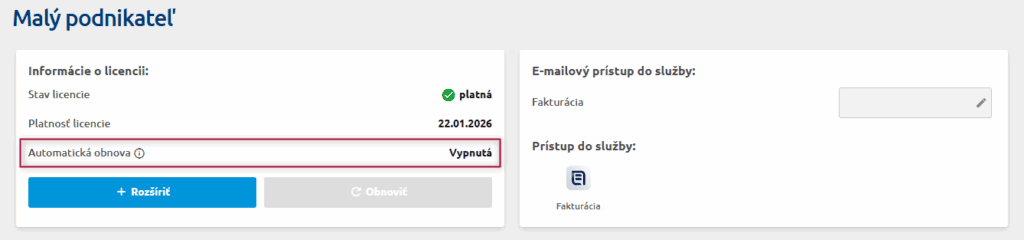 Služba bude automaticky obnovená 5 dní pred skončením platnosti licencie a finančné prostriedky vám budú stiahnuté z vašej platobnej karty.