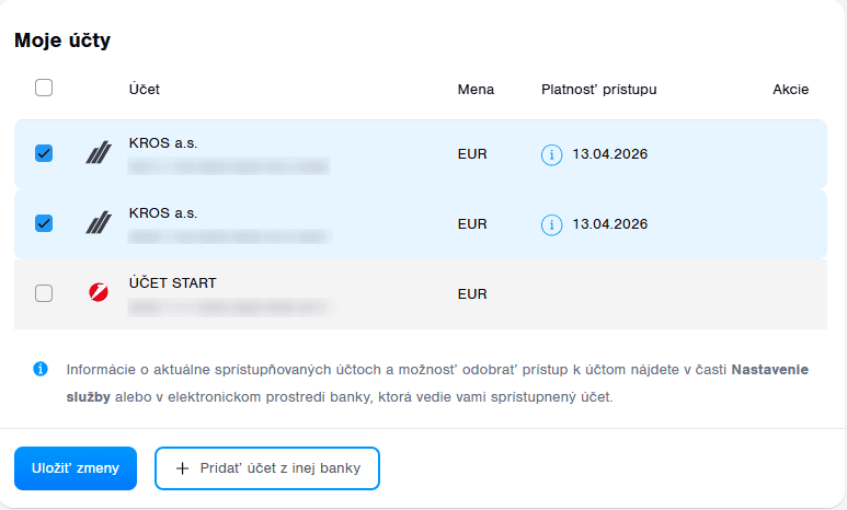 V prípade, že máte prepojených viacero bankových účtov, je potrebné zvoliť možnosť predĺžiť pri každom z nich.