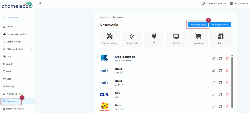 - V aplikácii Chameleoon v nastaveniach zvolíme možnosť +Pridať zdroj a vyberieme KROS Fakturáciu.