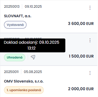 Doklad odoslaný – ak ste faktúru poslali mailom, ale klient si ju zatiaľ nezobrazil.