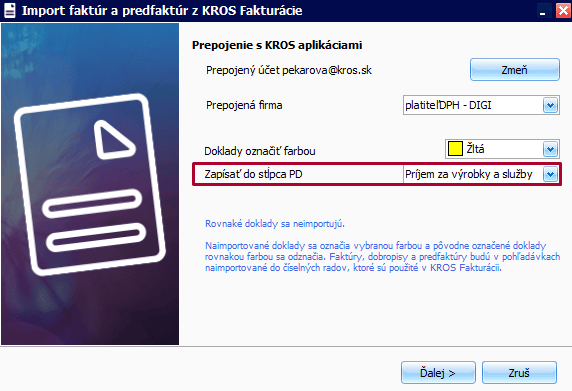 Pred importom faktúr stačí vybrať do akého stĺpca peňažného denníka pohľadávka patrí.