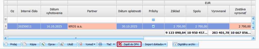 Tip: Naimportované faktúry zapíšete hromadne do evidencie DPH pomocou tlačidla Zapíš do DPH.