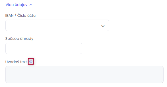 Na doklade v časti Viac údajov kliknite na ikonu ozubeného kolieska v konkrétnom texte alebo na možnosť + Pridať vlastný text.