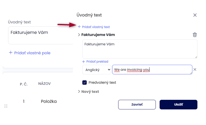 Pre zahraničných klientov si k textom môžete pridať preklad v cudzom jazyku. Najčastejšie používaný text si nastavte ako predvolený.