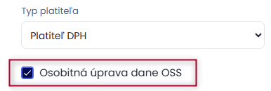 Cez Nastavenia v časti Firma si v Základných údajoch nastavte Typ platiteľa ako Platiteľ DPH a následne zakliknite voľbu Osobitná úprava dane OSS.
