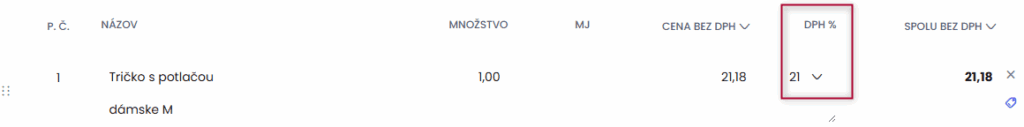 Na položke zadajte hodnotu DPH, v ktorej vystavujete faktúru.