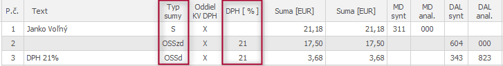 Po stiahnutí faktúry do OMEGY bude doklad rozúčtovaný s použitou sadzbou DPH a typmi súm so smerovaním do Daňového priznania OSS.