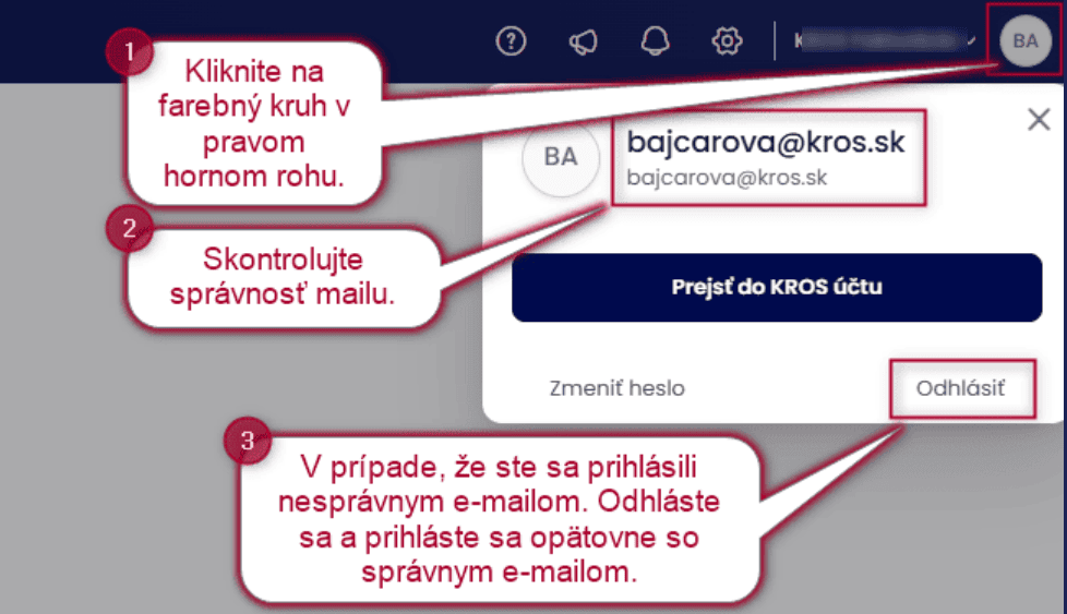 - ERROR – ak sa vám zobrazí errorová hláška, kvôli ktorej sa vám nespustila aplikácia, urobte obrázok danej hlášky a pošlite nám ju na email podpory: firma@kros.sk.