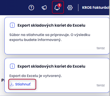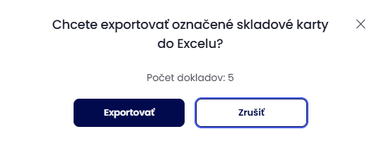 Zobrazí sa informácia o exporte označených kariet do excelu, kliknete na voľbu Exportovať a následne
