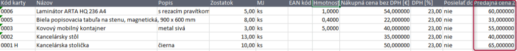Ak budete používať tento spôsob, je potrebné pri zmene cenníka zmeniť stĺpec, kde sa zadáva Cena bez DPH.