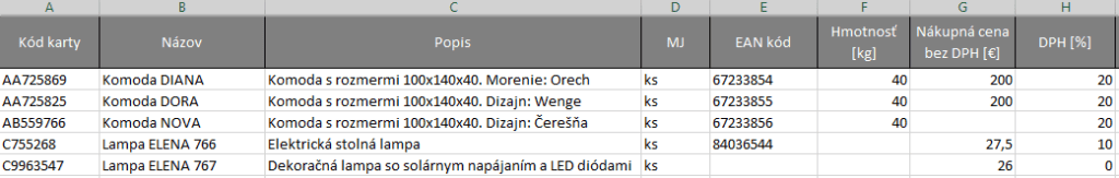 Pred prvým importom skladových kariet je potrebné mať pripravený podklad (napríklad Excel súbor),