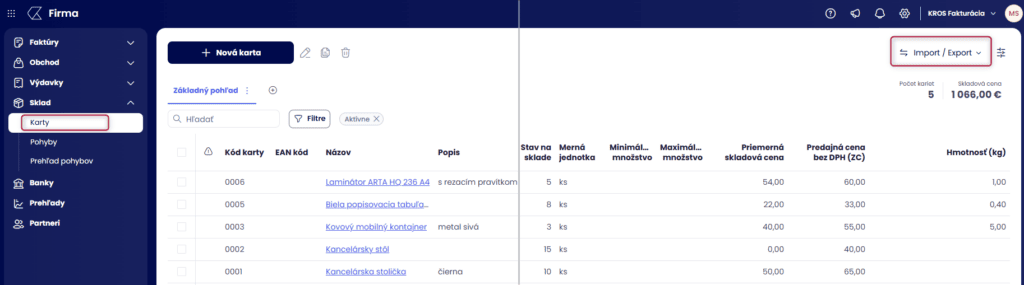 alebo cez hromadný import. Funkciu nájdete v záložke Karty ikona Import/Export , ktorá