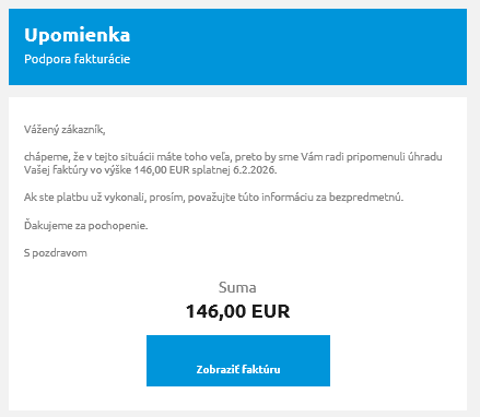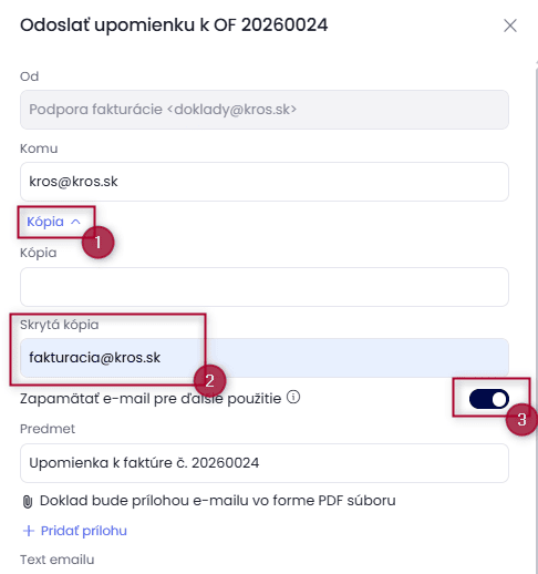 upomienok, vám odporúčame vyplniť pole Skrytá kópia s vašim e-mailom. V tom prípade, budú upomienky automaticky zaslané aj na váš e-mail.