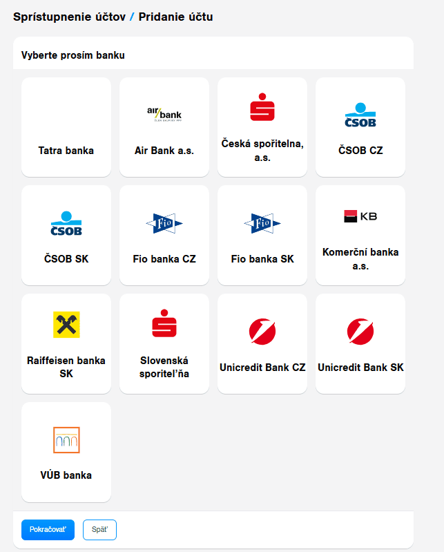 Jednotlivé bankové prepojenia je možné pridávať priebežne.