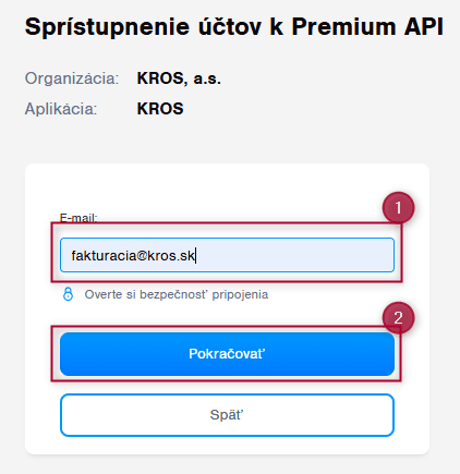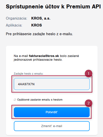 Po výbere možnosti používateľ zadá emailovú adresu, na ktorú mu bude zaslaný verifikačný kód/ heslo pre potvrdenie prepojenia.