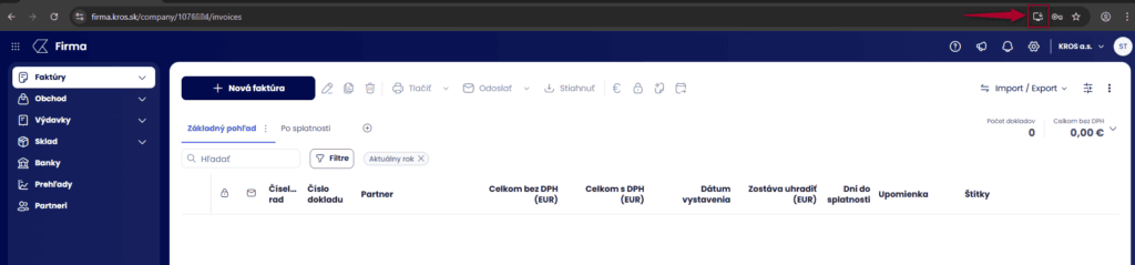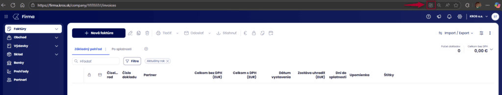 Pokiaľ používate na prácu počítač, viete si aplikáciu inštalovať priamo z webového prehliadača. Možnosť inštalácie nájdete po prihlásení do aplikácie, v pravej časti panela URL adresy, kde kliknete na príslušnú ikonu pre inštaláciu aplikácie.