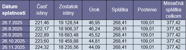 - pre prehľadnosť si môžete splátku rozúčtovať na Úrok a Poistenie.