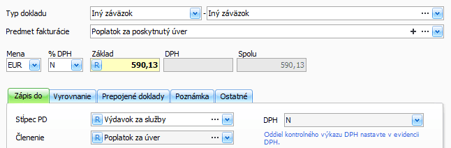 Zaevidovanie spracovateľského poplatku za poskytnutie úveru