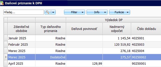 Riadne, prípadne opravné daňové priznanie k DPH a KV, ktoré ste už odoslali na Finančnú správu, v programe zo zoznamu nevymazávajte!