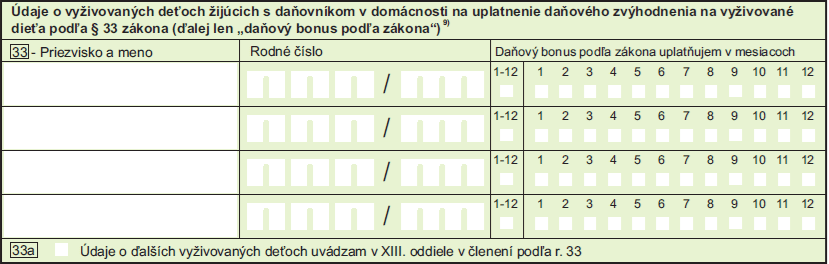 Pre uplatnenie daňového bonusu na deti vyplníme v DPFO nasledujúce časti: