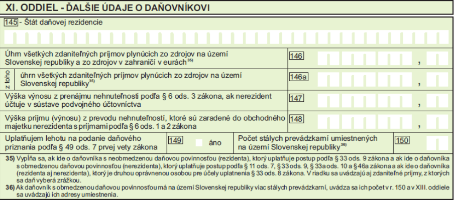 XI. ODDIEL – ĎALŠIE ÚDAJE O DAŇOVNÍKOVI