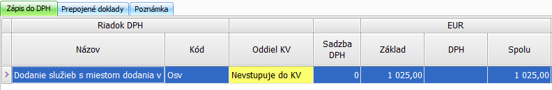 - Vo formulári evidencie DPH je doplnená informácia – Nevstupuje do KV.