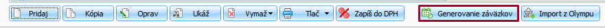 - v spodnej časti evidencie kliknite na Generovanie záväzkov.