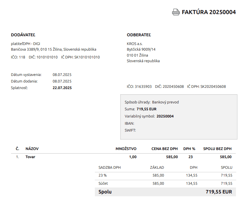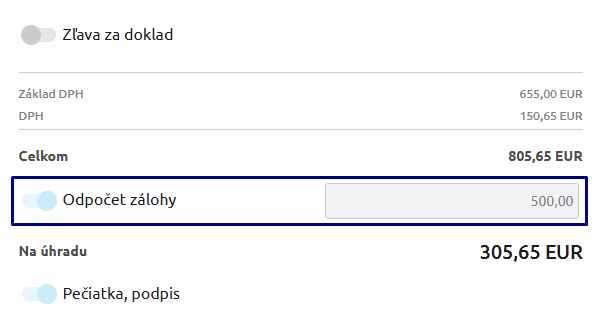 - Ak je na doklade v KROS Fakturácii pridaný odpočet zálohy, importom sa informácia prenesie aj do programu.