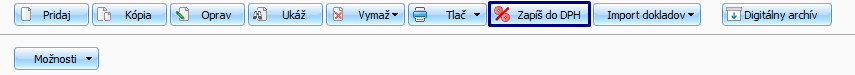 Označené čiže importované pohľadávky hromadne zapíšte do evidencie DPH cez Evidencie – Pohľadávky – Zapíš do DPH.