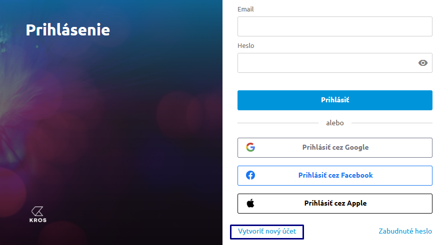 Na váš e-mail príde pozvanie do firmy, cez ktoré sa prihlásite. Ak ešte nemáte vytvorený KROS účet, zvolíte pred prvým prihlásením Vytvoriť nový účet.