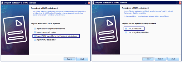 - Firma – Importy a exporty – Import dokladov z KROS aplikácií,