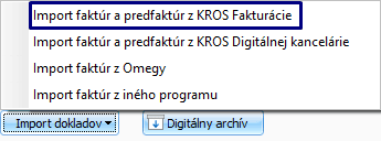 Import faktúr a predfaktúr z KROS Fakturácie