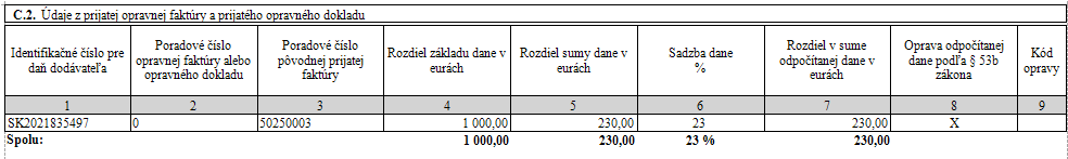 V stĺpci Poradové číslo opravnej faktúry alebo opravného dokladu bude uvedená nula. V stĺpci Poradové číslo pôvodnej prijatej faktúry bude uvedené číslo faktúry k neuhradenému záväzku, ktorý nebol v lehote 100 dní od dátumu splatnosti uhradený.