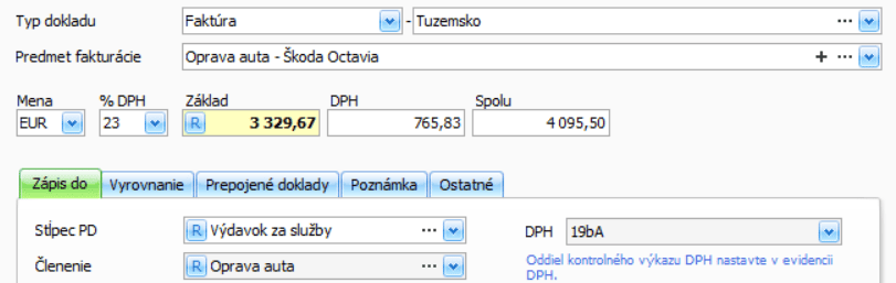 - zaevidujte sumu 4 095,50 eur s rozpisom na základ a DPH.