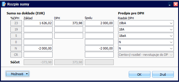 - V poli Základ je uvedená suma mínusom a v poli DPH je tá istá suma s plusom,