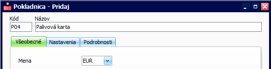 - Pokladnicu vytvoríte cez Číselníky – Pokladnice, tlačidlom Pridaj,