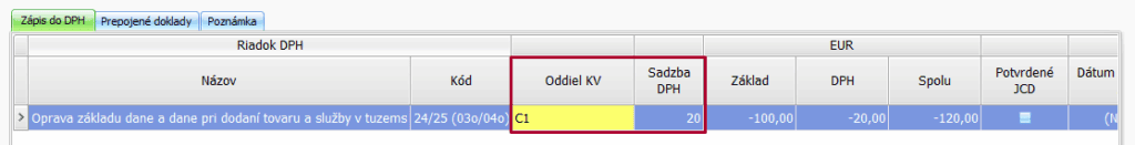 Takéto opravné doklady budú vstupovať do KV DPH v roku 2025 do odd. C.1 a C.2 so starými sadzbami DPH (resp. 20 %, 10 %, príp. 5 %).