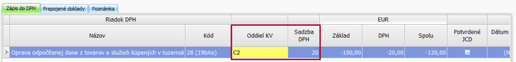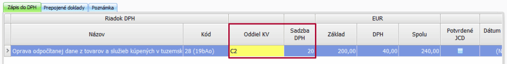 - V evidencii DPH je doplnený Oddiel KV – C2 a sadzba DPH, platná do 31.12.2024.