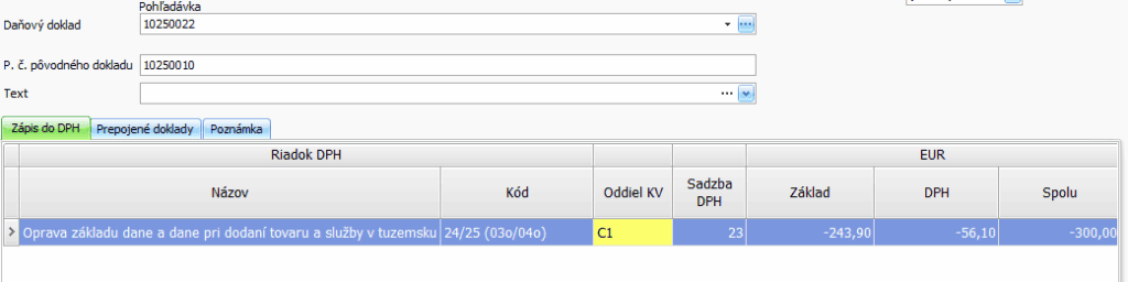 - V Zázname DPH – Pridaj je doplnený Oddiel KV – C1,