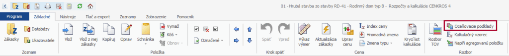 Následne spustite funkciu Oceňovacích podkladov zo záložky „Základné„.