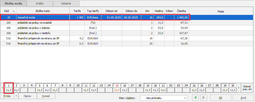 Zamestnanec je odmeňovaný mesačnou mzdou a má naplánovanú zmenu na deň 01. 09. 2025 (pondelok) a túto zmenu aj odpracuje. Ako bude vyzerať jeho mzda za 09/2025?