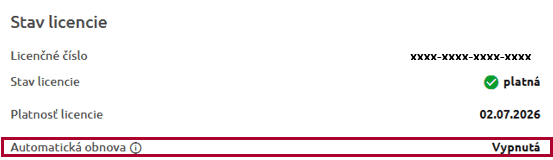 Služba bude automaticky obnovená 5 dní pred skončením platnosti licencie a finančné prostriedky vám budú stiahnuté z vašej platobnej karty.