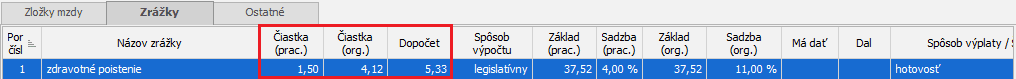 Preddavok za zamestnanca na ZP (4 %) z vymeriavací základu 37,52 eura = 1,50 eura
