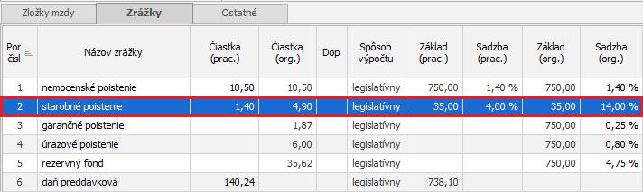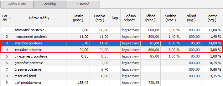 VZ na starobné poistenie (SP) znížený o OOPS je vo výške 85 eur (800 – 715).
