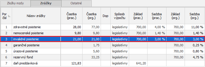 VZ na invalidné poistenie (IP) je vo výške 800 eur (neznižuje sa o OOPS).