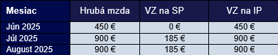 VZ na SP znížený o OOPS je vo výške 0 eur (450 – 715).
