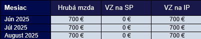 VZ na SP znížený o OOPS je vo výške 0 eur (700 – 715)