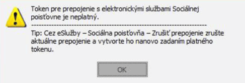 Ak skončila platnosť tokenu po 12 mesiacoch, program Vás upozorní hláškou.