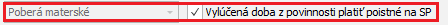 V dolnej časti formulára sa nachádza voľba s názvom Vylúčená doba z povinnosti platiť poistné na SP, ktorá je označená vtedy, ak zamestnankyňa z daného pracovného vzťahu podala žiadosť o materské a materské jej bolo priznané alebo jediným dôvodom nepriznania materského je nesplnená podmienka 270 dní nemocenského poistenia.